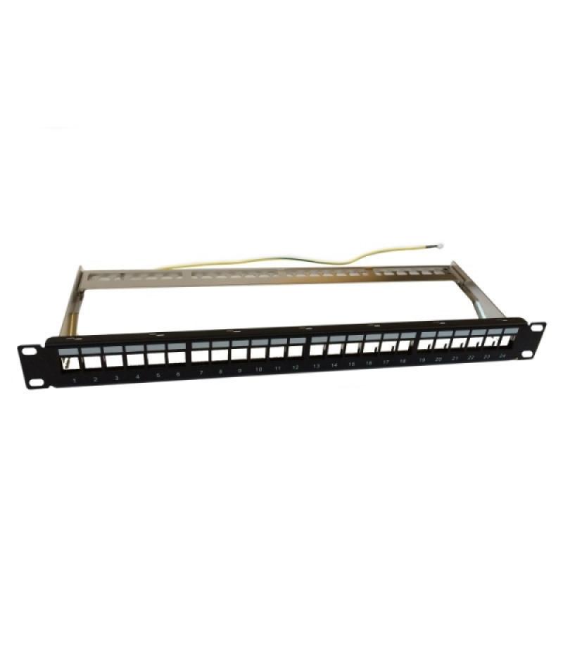 WP Patch Panel de 24 Puertos RJ45 CAT6 STP - 1U Keystone Modular - Color Negro