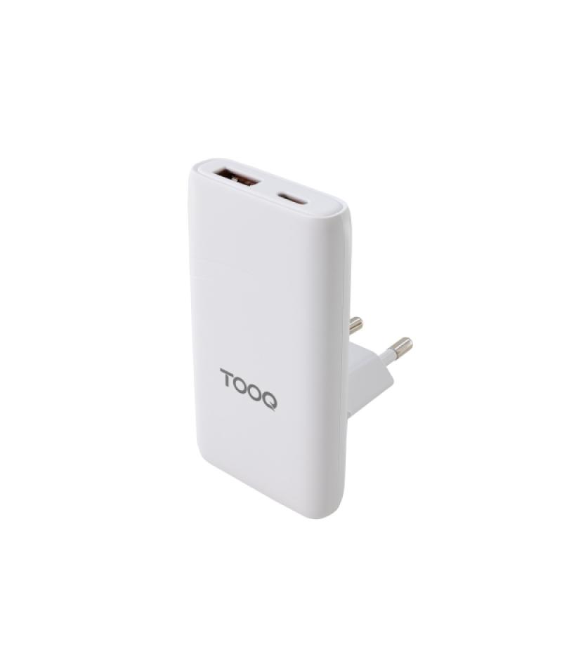 Informática - Cables - Adaptadores de viaje 404393 - Tooq Adaptador de Viaje - Compatibilidad con EU, KR, UK - Tecnologia GaN 65W - Puerto USB-C PD y USB-A QC - Color BlancoBeneficiario :