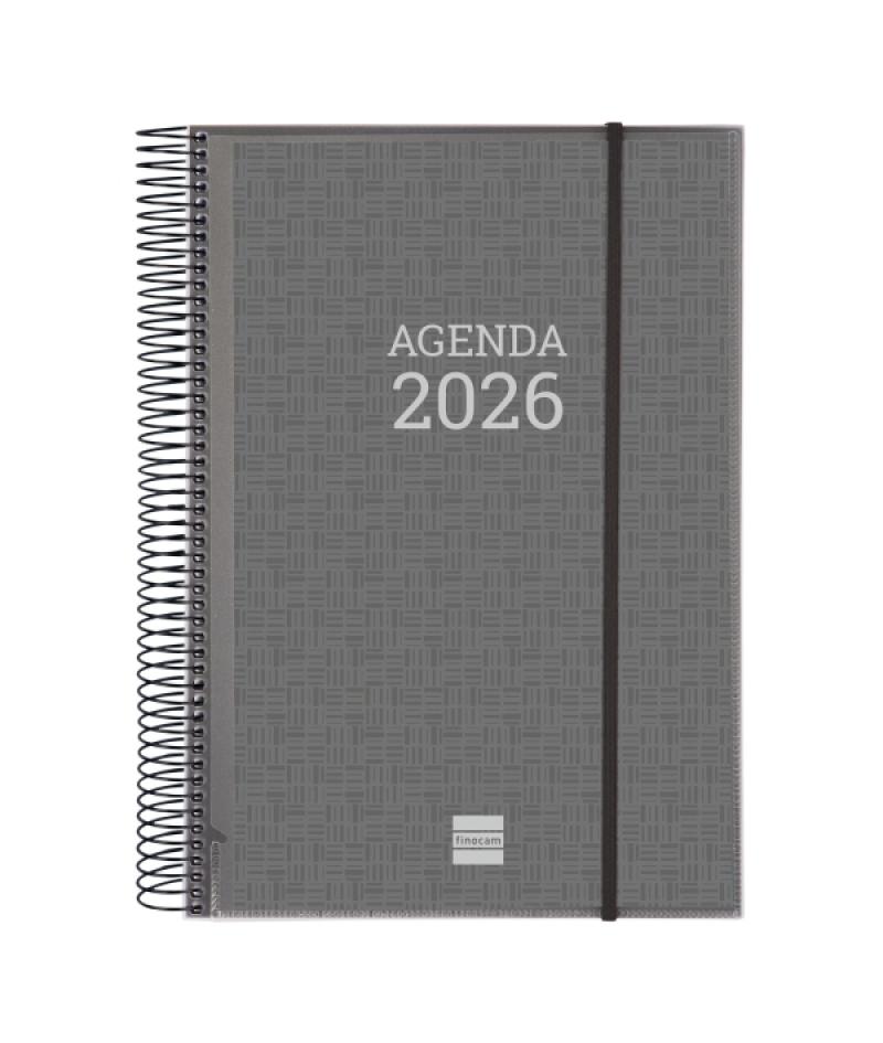 Finocam Basics Agenda - Anual 2026 - con Espiral - Personalizable - Formato E40 - 230x29x297mm - 1 Dia por Pagina - Color Gris