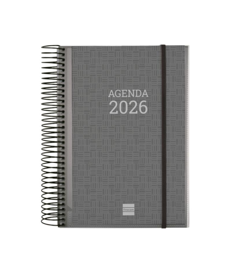 Papelería / Material de oficina - Material de oficina - Agendas, Dietarios, Calendarios, Bloques anuales, etc. - Agendas 393788 - Finocam Basics Agenda en Catalan - Anual 2026 - con Espiral - Personalizable - Formato E10 - 175x29x212mm - 1 Dia por Pagina - Color GrisBeneficiario :