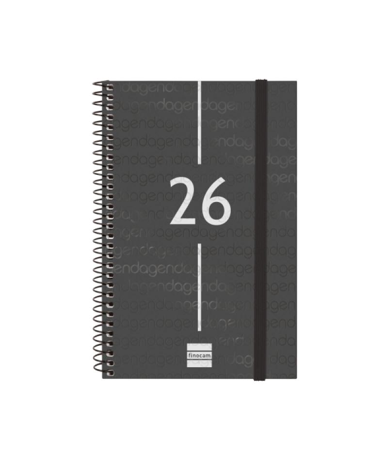 Finocam Year Agenda de Espiral - Anual 2026 - Tapa Ligera - Formato E5 - 125x14x181mm - Semana Vista Horizontal - Color Negro
