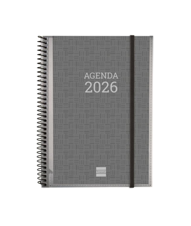 Papelería / Material de oficina - Material de oficina - Agendas, Dietarios, Calendarios, Bloques anuales, etc. - Agendas 393903 - Finocam Basics Agenda - Anual 2026 - con Espiral - Personalizable - Formato E10 - 162x14x212mm - Semana Vista Horizontal - Color GrisBeneficiario :