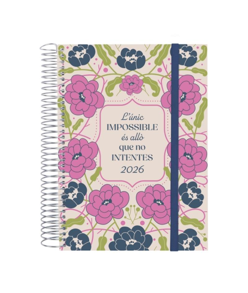 Papelería / Material de oficina - Material de oficina - Agendas, Dietarios, Calendarios, Bloques anuales, etc. - Agendas 394188 - Finocam Design Collection Agenda de Espiral en Catalan - Anual 2026 - Tapa Ligera - Formato E10 - 172x29x212mm - 1 Dia por Pagina - Tematica de FloresBeneficiario :