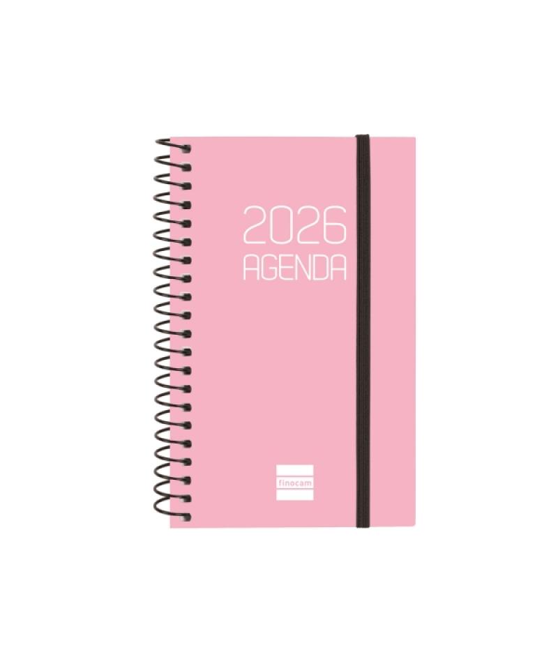 Papelería / Material de oficina - Material de oficina - Agendas, Dietarios, Calendarios, Bloques anuales, etc. - Agendas 394223 - Finocam Opaque Agenda de Espiral - Anual 2026 - Tapa Ligera - Cierre con Goma Elastica - Formato E3 - 85x14x127mm - Semana Vista Horizontal - Color RosaBeneficiario :