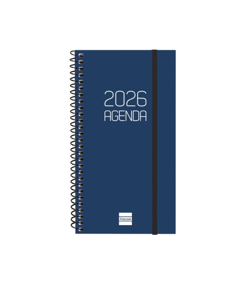 Papelería / Material de oficina - Material de oficina - Agendas, Dietarios, Calendarios, Bloques anuales, etc. - Agendas 392758 - Finocam Opaque Agenda de Espiral - Anual 2026 - Tapa Ligera - Cierre con Goma Elastica - Formato E9 - 100x14x171mm - Semana Vista Horizontal - Color AzulBeneficiario :