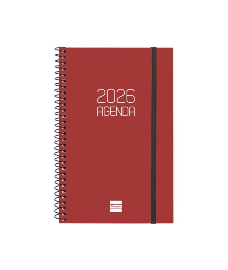 Papelería / Material de oficina - Material de oficina - Agendas, Dietarios, Calendarios, Bloques anuales, etc. - Agendas 392813 - Finocam Opaque Agenda de Espiral - Anual 2026 - Tapa Ligera - Cierre con Goma Elastica - Formato E5 - 125x14x181mm - Semana Vista Horizontal - Color BurdeosBeneficiario :
