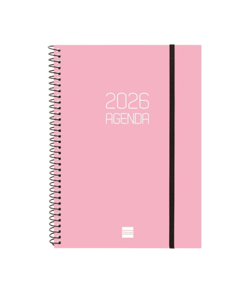 Papelería / Material de oficina - Material de oficina - Agendas, Dietarios, Calendarios, Bloques anuales, etc. - Agendas 392903 - Finocam Opaque Agenda de Espiral en Catalan - Anual 2026 - Tapa Ligera - Cierre con Goma Elastica - Formato E10 - 217x14x297mm - Semana Vista Horizontal - Color RosaBeneficiario :