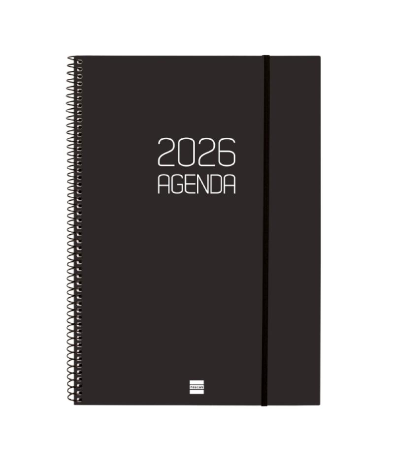 Papelería / Material de oficina - Material de oficina - Agendas, Dietarios, Calendarios, Bloques anuales, etc. - Agendas 392963 - Finocam Opaque Agenda de Espiral - Anual 2026 - Tapa Ligera - Cierre con Goma Elastica - Formato E40 - 217x14x297mm - Semana Vista en Vertical - Color NegroBeneficiario :