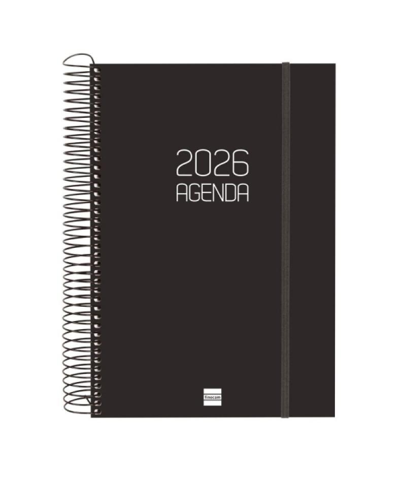 Papelería / Material de oficina - Material de oficina - Agendas, Dietarios, Calendarios, Bloques anuales, etc. - Agendas 392983 - Finocam Opaque Agenda de Espiral - Anual 2026 - Tapa Ligera - Cierre con Goma Elastica - Formato E11 - 1 Dia por Pagina - Color NegroBeneficiario :