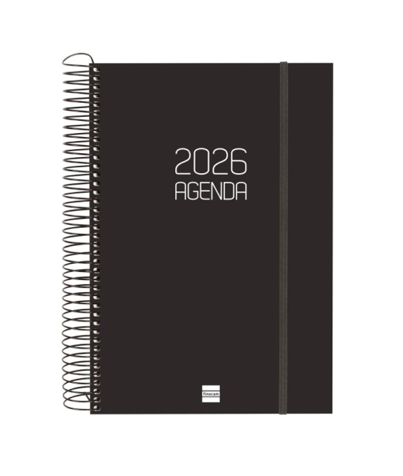Papelería / Material de oficina - Material de oficina - Agendas, Dietarios, Calendarios, Bloques anuales, etc. - Agendas 392993 - Finocam Opaque Agenda de Espiral en Catalan - Anual 2026 - Tapa Ligera - Cierre con Goma Elastica - Formato E11 - 175x29x242mm - 1 Dia por Pagina - Color NegroBeneficiario :