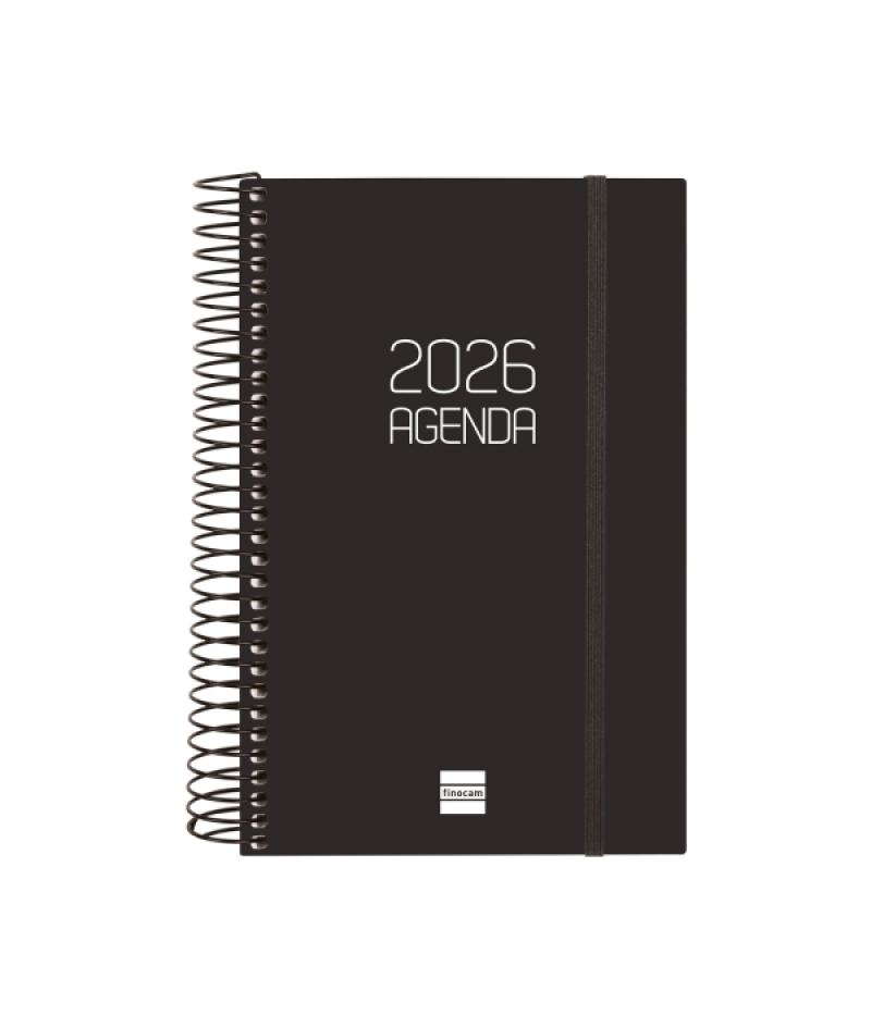 Papelería / Material de oficina - Material de oficina - Agendas, Dietarios, Calendarios, Bloques anuales, etc. - Agendas 393008 - Finocam Opaque Agenda de Espiral - Anual 2026 - Tapa Ligera - Cierre con Goma Elastica - Formato E5 - 1 Dia por Pagina - Color NegroBeneficiario :