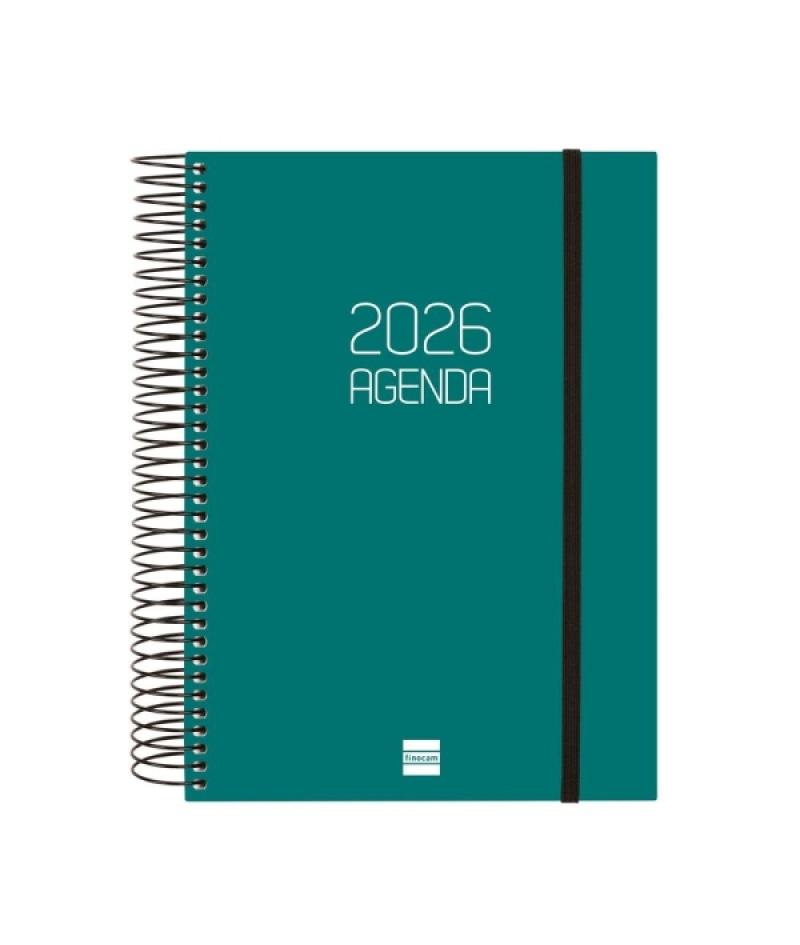 Papelería / Material de oficina - Material de oficina - Agendas, Dietarios, Calendarios, Bloques anuales, etc. - Agendas 393023 - Finocam Opaque Agenda de Espiral - Anual 2026 - Tapa Ligera - Cierre con Goma Elastica - Formato E10 - 175x29x212mm - 1 Dia por Pagina - Color VerdeBeneficiario :