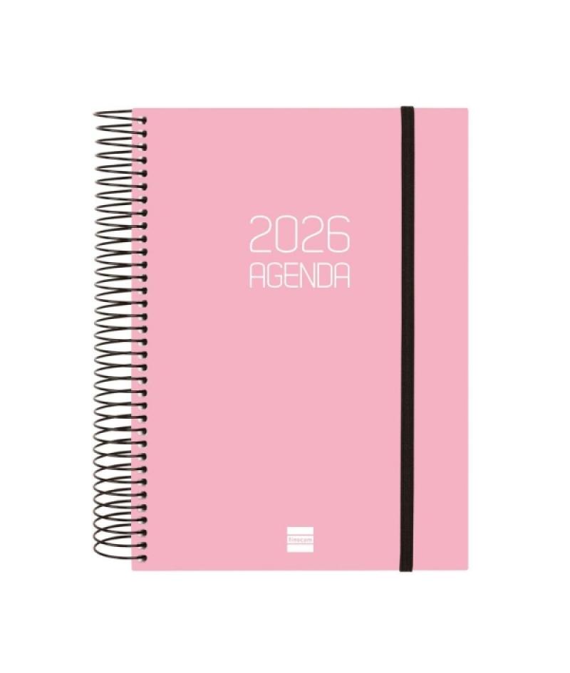 Papelería / Material de oficina - Material de oficina - Agendas, Dietarios, Calendarios, Bloques anuales, etc. - Agendas 393033 - Finocam Opaque Agenda de Espiral - Anual 2026 - Tapa Ligera - Cierre con Goma Elastica - Formato E10 - 175x29x212mm - 1 Dia por Pagina - Color RosaBeneficiario :