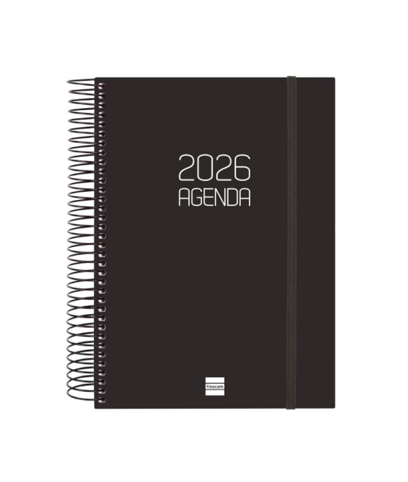 Papelería / Material de oficina - Material de oficina - Agendas, Dietarios, Calendarios, Bloques anuales, etc. - Agendas 393038 - Finocam Opaque Agenda de Espiral - Anual 2026 - Tapa Ligera - Cierre con Goma Elastica - Formato E10 - 175x29x212mm - 1 Dia por Pagina - Color NegroBeneficiario :