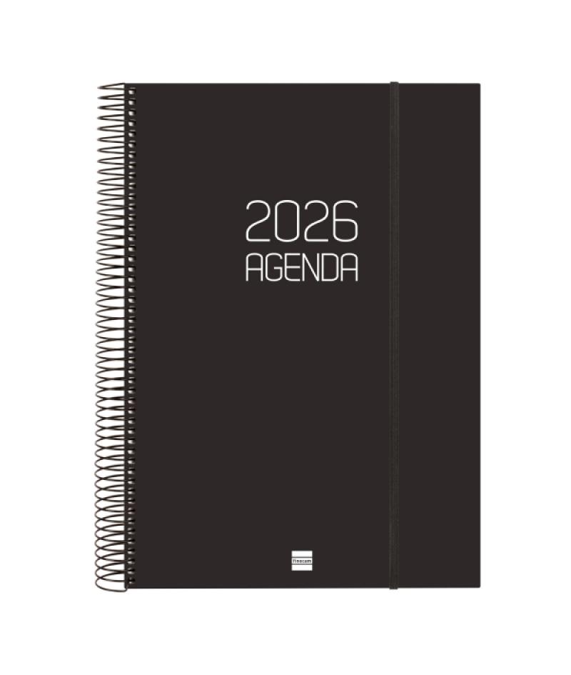 Papelería / Material de oficina - Material de oficina - Agendas, Dietarios, Calendarios, Bloques anuales, etc. - Agendas 393053 - Finocam Opaque Agenda de Espiral - Anual 2026 - Tapa Ligera - Cierre con Goma Elastica - Formato E40 - 230x29x297mm - 1 Dia por Pagina - Color NegroBeneficiario :