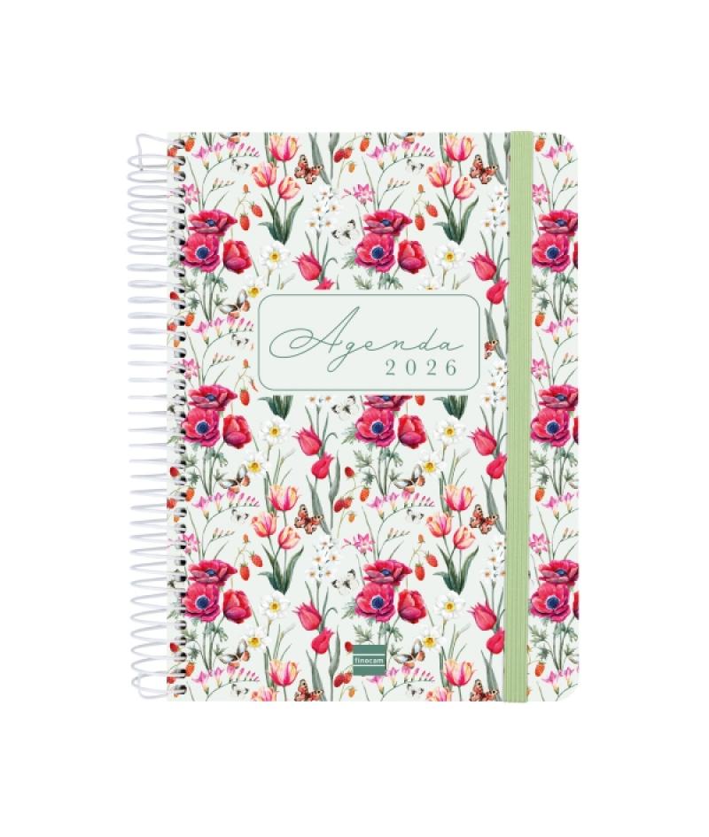 Finocam Cloe Agenda de Espiral - Anual 2026 - Planificador - Cierre de Goma - Formato E10 - 175x28x214mm - 1 Dia por Pagina - Co