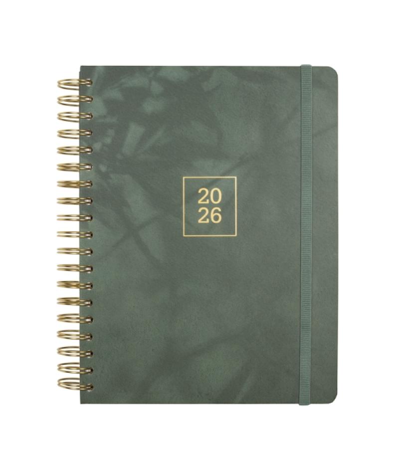 Papelería / Material de oficina - Material de oficina - Agendas, Dietarios, Calendarios, Bloques anuales, etc. - Agendas 393313 - Finocam Optimal Agenda de Espiral Internacional - Anual 2026 - Planificador - Cierre de Goma - Formato B5 - 176x250mm - Semana Vista Horizontal - Color VerdeBeneficiario :