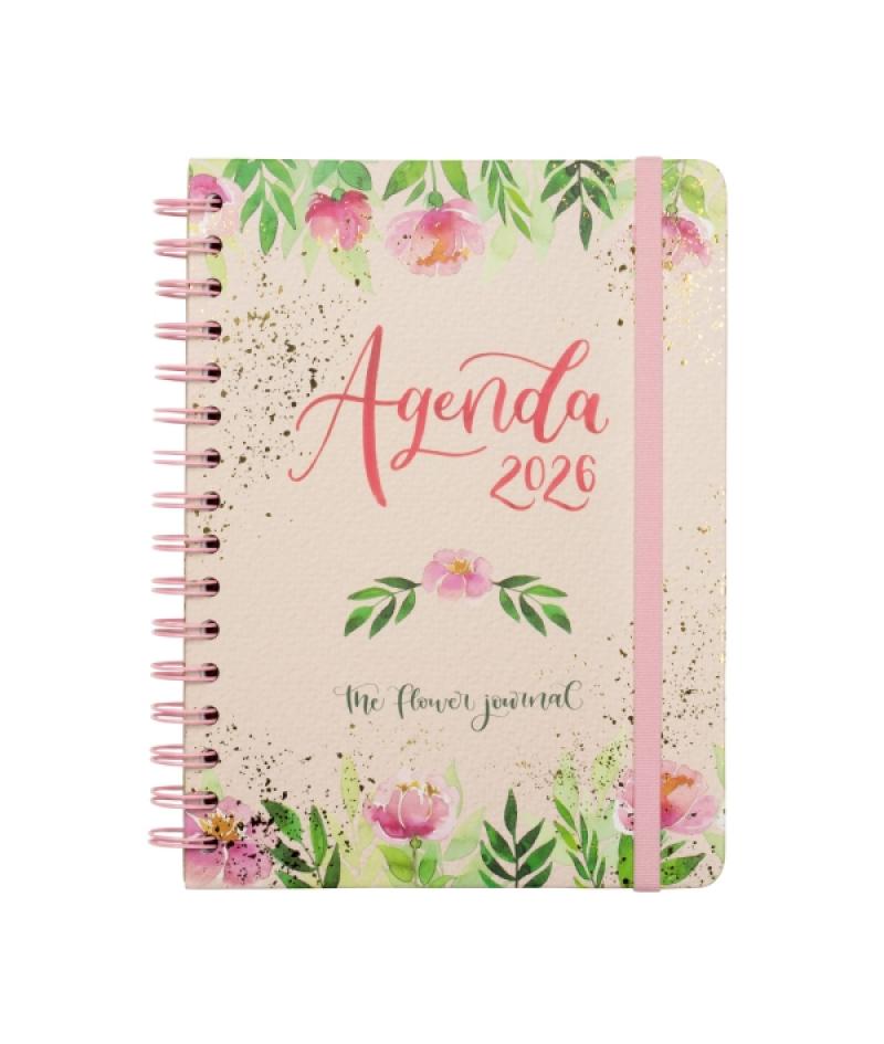 Papelería / Material de oficina - Material de oficina - Agendas, Dietarios, Calendarios, Bloques anuales, etc. - Agendas 392198 - Finocam Flower Journal Agenda de Espiral - Anual 2026 - Tapa Dura - Cierre de Goma - Formato E10 - 155X212mm - Semana Vista Horizontal - Color RosaBeneficiario :