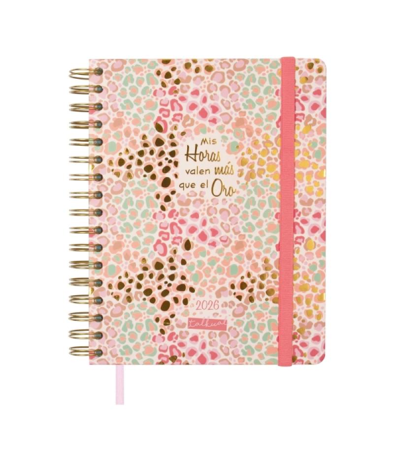 Papelería / Material de oficina - Material de oficina - Agendas, Dietarios, Calendarios, Bloques anuales, etc. - Agendas 391968 - Finocam Talkual Agenda de Espiral - Anual 2026 - Tapa Dura - Cierre de Goma - Formato 1/4 - 155x217mm - Semana Vista Horizontal - Tematica de Estampado OroBeneficiario :