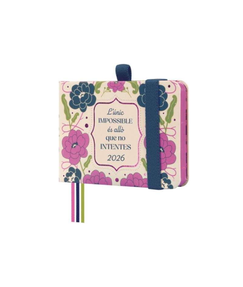 Papelería / Material de oficina - Material de oficina - Agendas, Dietarios, Calendarios, Bloques anuales, etc. - Agendas 391093 - Finocam Minimal Design Agenda en Catalan - Anual 2026 - Tapa Dura - Cierre con Goma Elastica - Formato M0 - 108x16x77mm - Semana Vista en Vertical - Tematica de FloresBeneficiario :