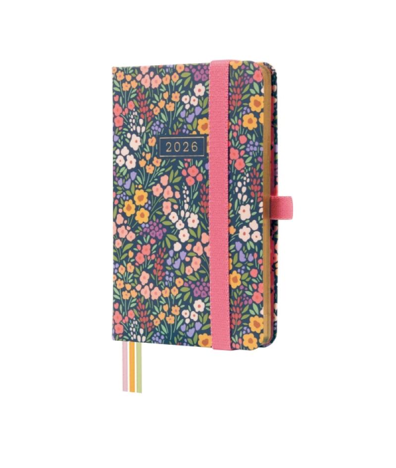 Papelería / Material de oficina - Material de oficina - Agendas, Dietarios, Calendarios, Bloques anuales, etc. - Agendas 391118 - Finocam Minimal Design Agenda - Anual 2026 - Tapa Dura - Cierre con Goma Elastica - Formato M2 - 86x15x132mm - Semana Vista Horizontal - Tematica de FloresBeneficiario :