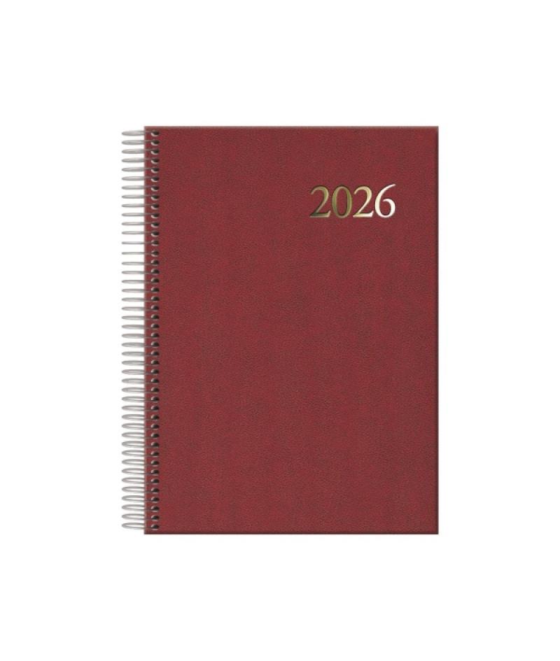 Dohe Segovia Agenda Anual Espiral - Dia Pagina - Sabado y Domingo misma Pagina - Tamaño 14x20cm - Color Burdeos