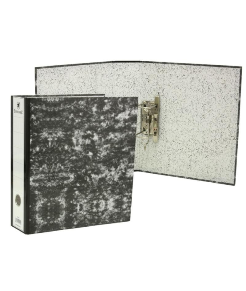 Bismark Archivador A-Z Jaspeado Folio Lomo 75mm - Carton Forrado - Tarjetero en el Lomo - Mecanismo de Palanca - Color Negro Jas