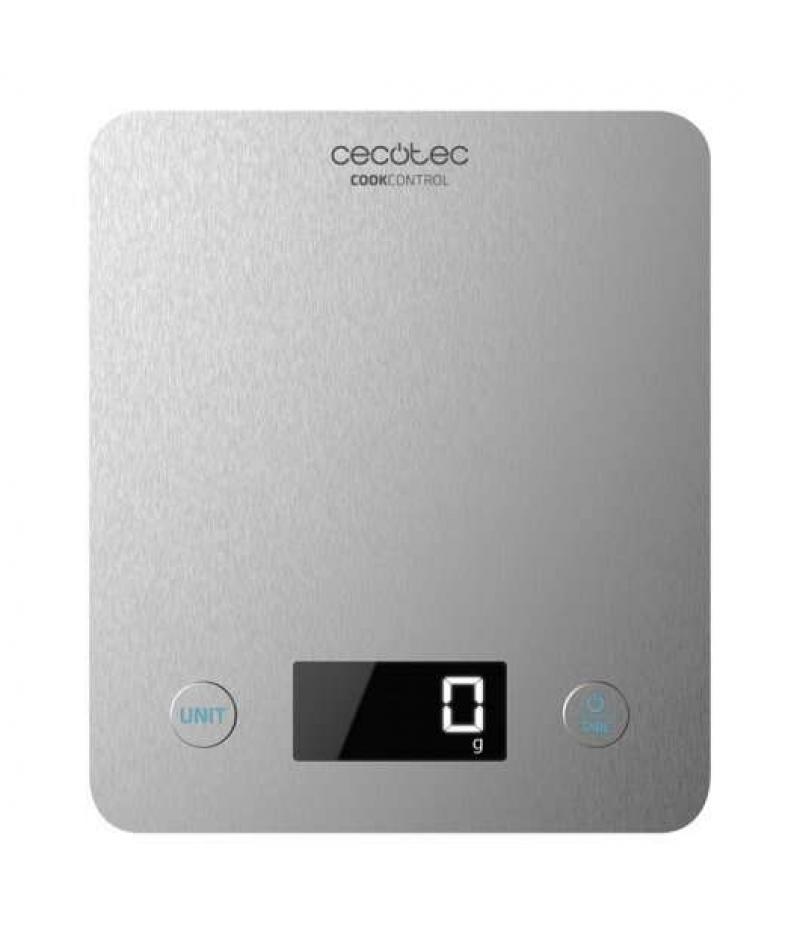 Cecotec Cook Control 10000 Connected Bascula de Cocina - Acabado en Acero Inox - Precision de 1gr - Peso Max. 5kg - Pantalla LCD
