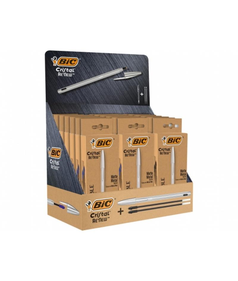 Bic Cristal Re´new Expositor de 21 Boligrafos de Bola con Cuerpo Metalico + 2 Recambios + 50 Bic Cristal Azul de Regalo - 15 Tin