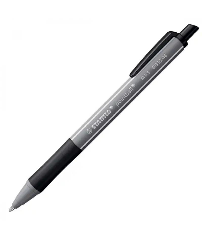 Papelería / Material de oficina - Escritura y corrección - Bolígrafos 403498 - Stabilo Pointball Colorful Boligrafo Retractil - Trazo 0.5mm - Hecho con 87% Bioplastico - Grip Antideslizante - Recargable - Color NegroBeneficiario :