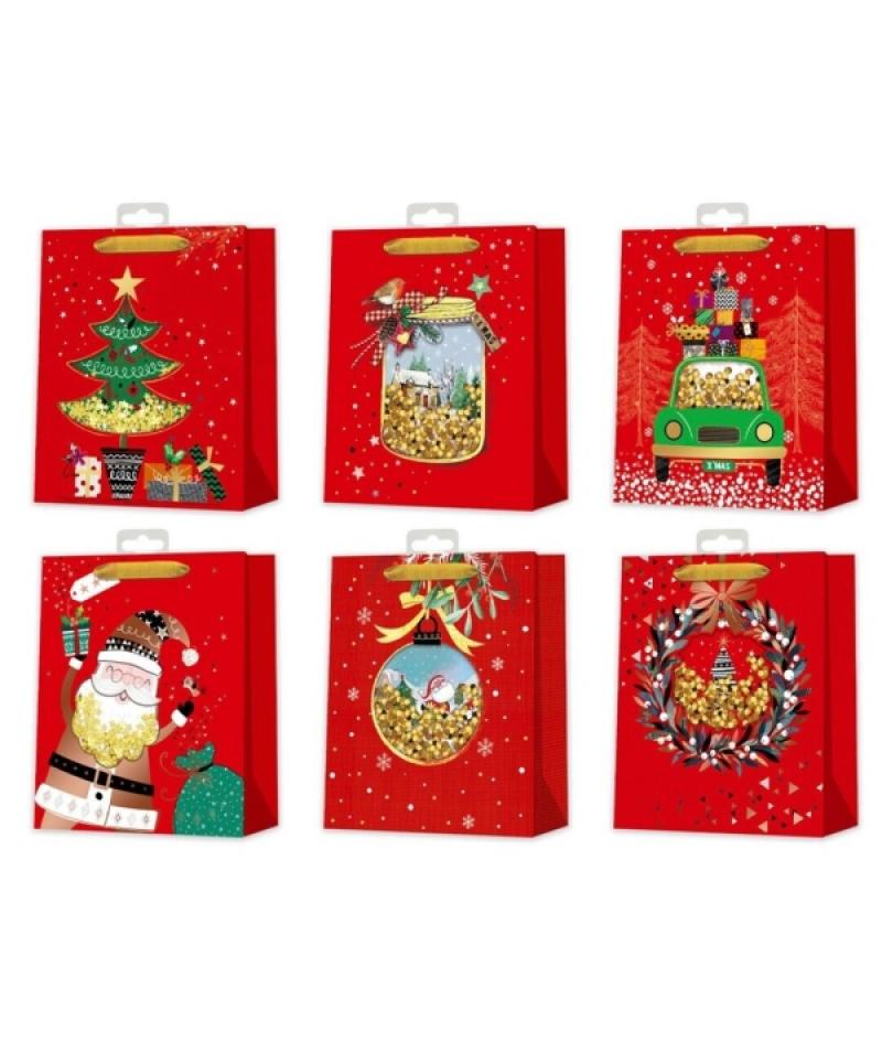 Papelería / Material de oficina - Embalajes - Bolsas 408193 - Bismark Bolsa de Papel Navidad Roja - Impresion Foil y Confetti - 6 Diseños DiferentesBeneficiario :
