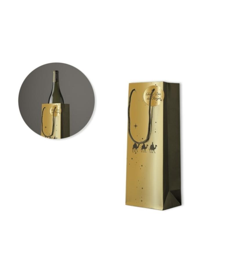 Papelería / Material de oficina - Embalajes - Bolsas 408073 - Bismark Bolsa de Papel Reyes Magos para Botellas - Medidas 12x37x10cm - Tarjeta para Personalizar - Color OroBeneficiario :