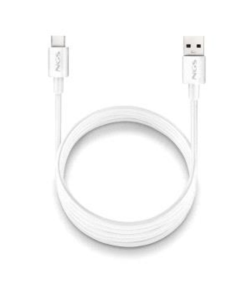 NGS ZYRO-AC Cable USB-C a USB-A - Cargar Rapida - 480 Mbps - 15W - 1 Metro - Color Blanco