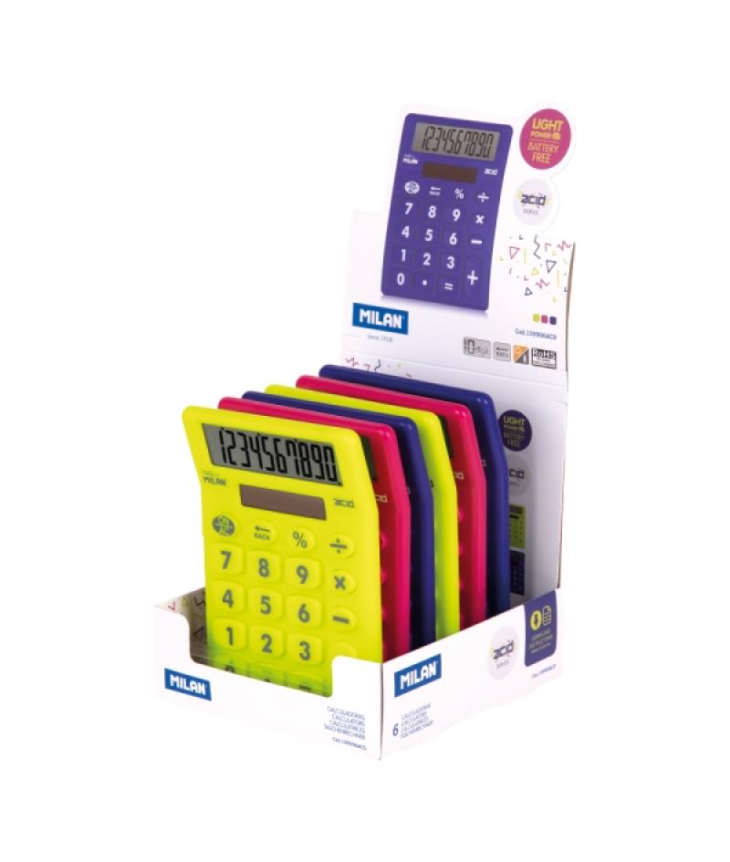 Milan Acid Expositor con 6 Calculadoras de Sobremesa - 10 Digitos - Colores Surtidos