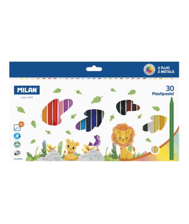 Papelería / Material de oficina - Dibujar, pintar y colorear - Ceras de colores 398978 - Milan Plastipastel Pack de 30 Ceras de Colores Redondas - Contiene 3 Ceras Fluo y 2 Metal - Colores SurtidosBeneficiario :