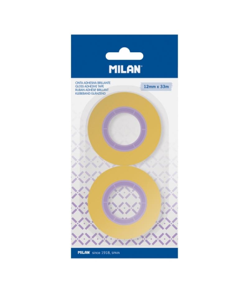 Milan Pack de 2 Cintas Adhesivas - 12mm x 33m - Color Amarillo Transparente