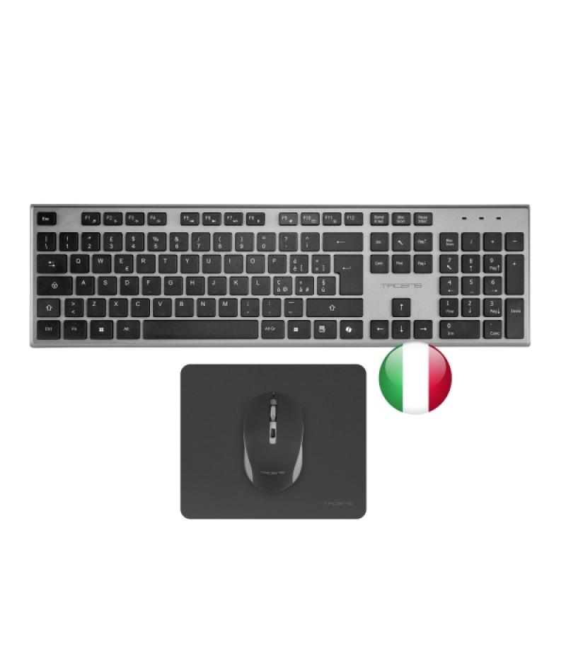 Tacens Zenith Combo Pack Inalabrico de Teclado Completo + Raton y Alfombrilla - Disposicion Italiana QWERTY IT - Teclas Silencio