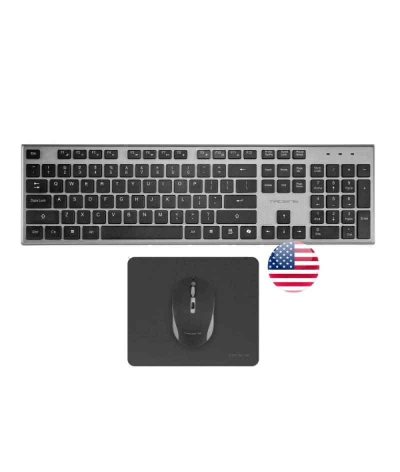 Tacens Zenith Combo Pack Inalabrico de Teclado Completo + Raton y Alfombrilla - Disposicion Internacional QWERTY US - Teclas Sil