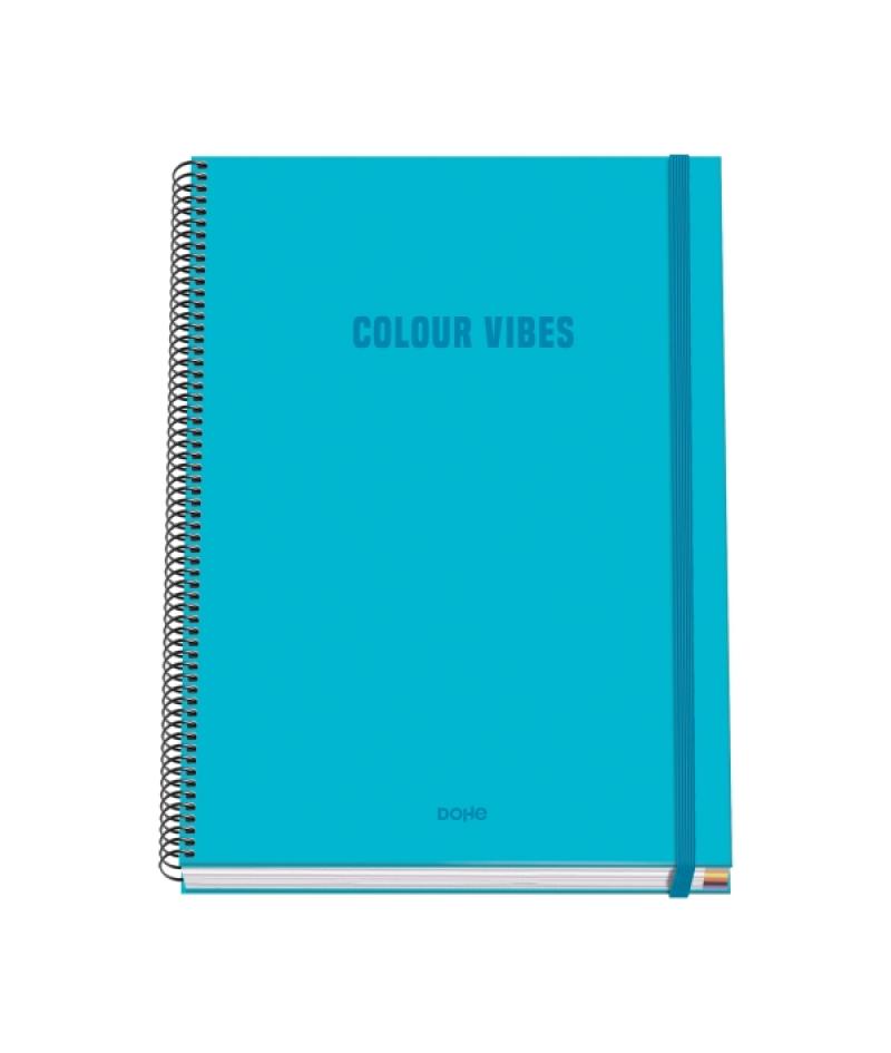 Papelería / Material de oficina - Productos de papel - Cuadernos, libretas, blocs y recambios 313563 - Dohe Colour Vives Cuaderno Espiral A4 100 Hojas Microperforadas Cuadricula 5mm - Tapa Dura Carton Forrado - Cierre de Goma - Bandas de Color - Color Azul CyanBeneficiario :
