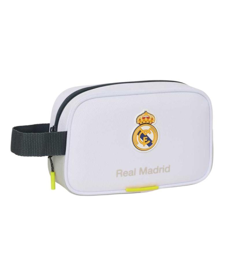 Safta Real Madrid Neceser de 2L Portatodo - Asa de Mano - Cierre de Cremallera - 22x13.5x8cm - Color Blanco y Negro