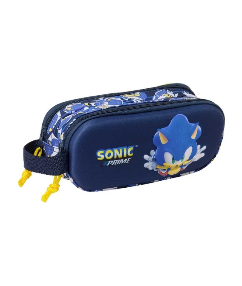 Safta Sonic Estuche Portatodo 3D - 2 Compartimentos - Cierre de Cremallera - Asa de Mano - 21x8x6cm - Color Azul Marino