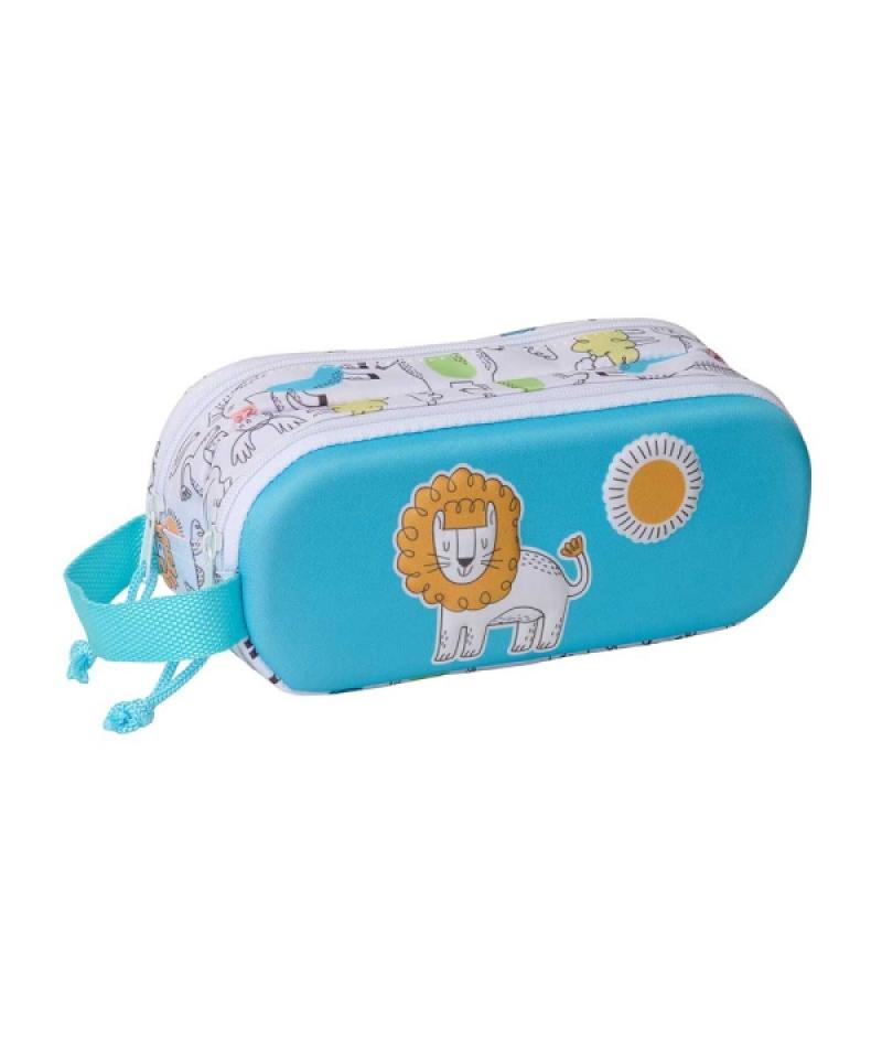 Papelería / Material de oficina - Material escolar y educativo - Estuches escolares, bolsos portatodo y plumier 389578 - Safta Lion Estuche Portatodo 3D - 2 Compartimentos - Cierre de Cremallera - Asa de Mano - 21x8x6cm - Color Blanco y AzulBeneficiario :