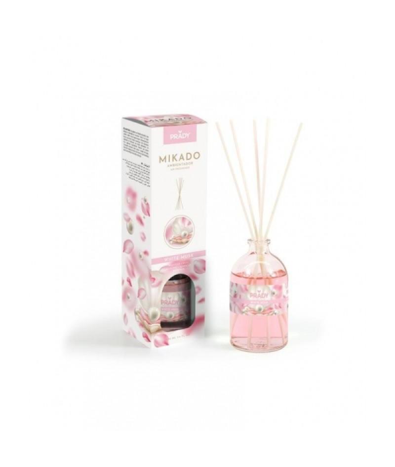 Prady Ambientador Mikado White Musk - Frasco de Cristal 100 ml y Varitas Difusoras