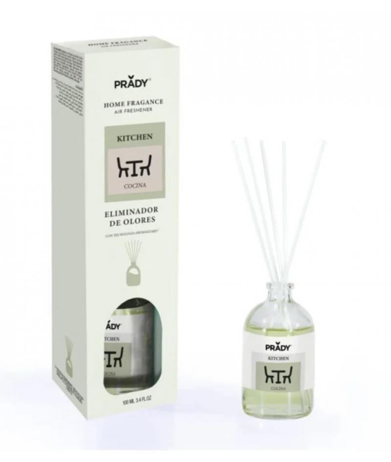 Prady Ambientador Mikado Neutralizador de Olores Para Cocina - Frasco de Cristal 100 ml y Varitas Difusoras