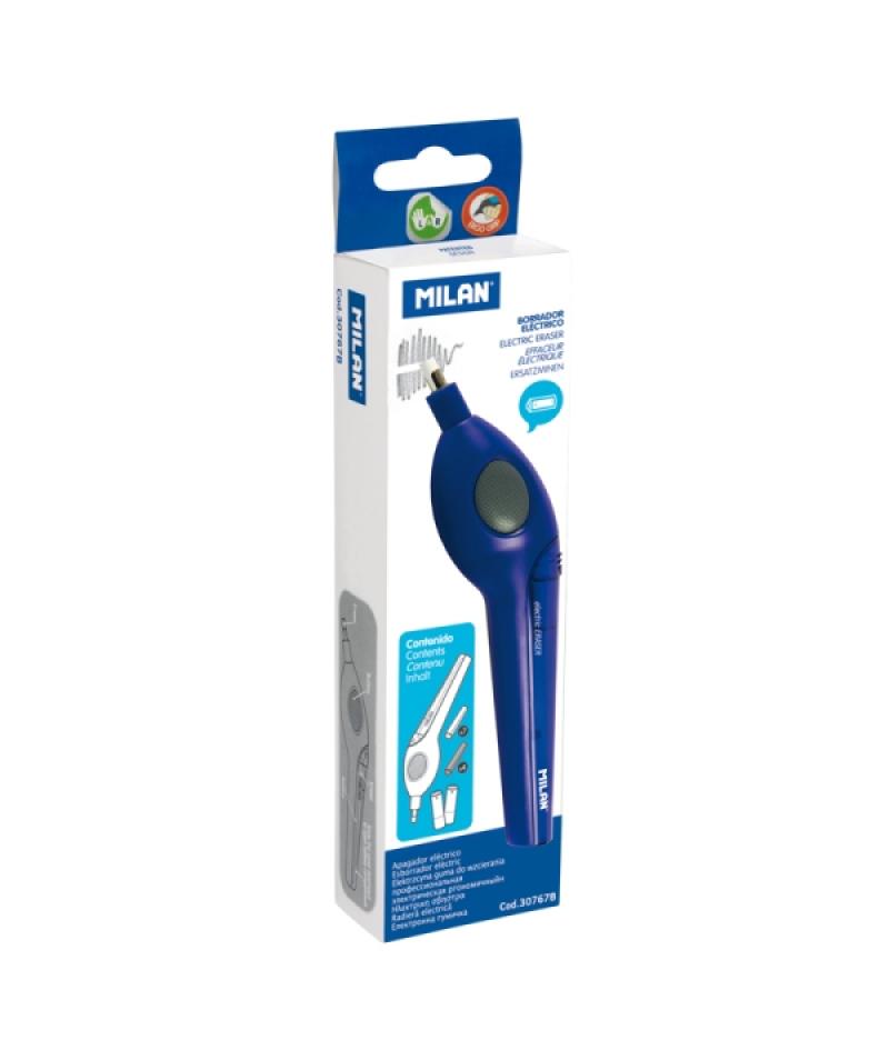 Papelería / Material de oficina - Escritura y corrección - Correctores y gomas de borrar - Gomas de borrar 396958 - Milan Acid Borrador Electrico - Incluye Gomas de Recambio y Pilas - Color AzulBeneficiario :