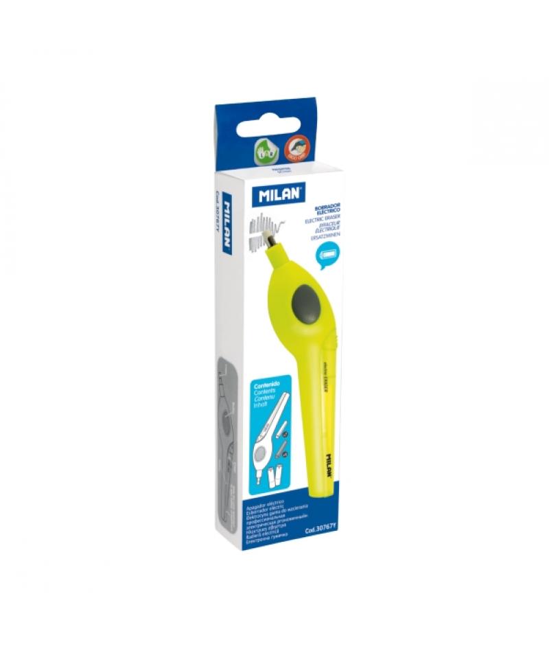 Papelería / Material de oficina - Escritura y corrección - Correctores y gomas de borrar - Gomas de borrar 396953 - Milan Acid Borrador Electrico - Incluye Gomas de Recambio y Pilas - Color AmarilloBeneficiario :