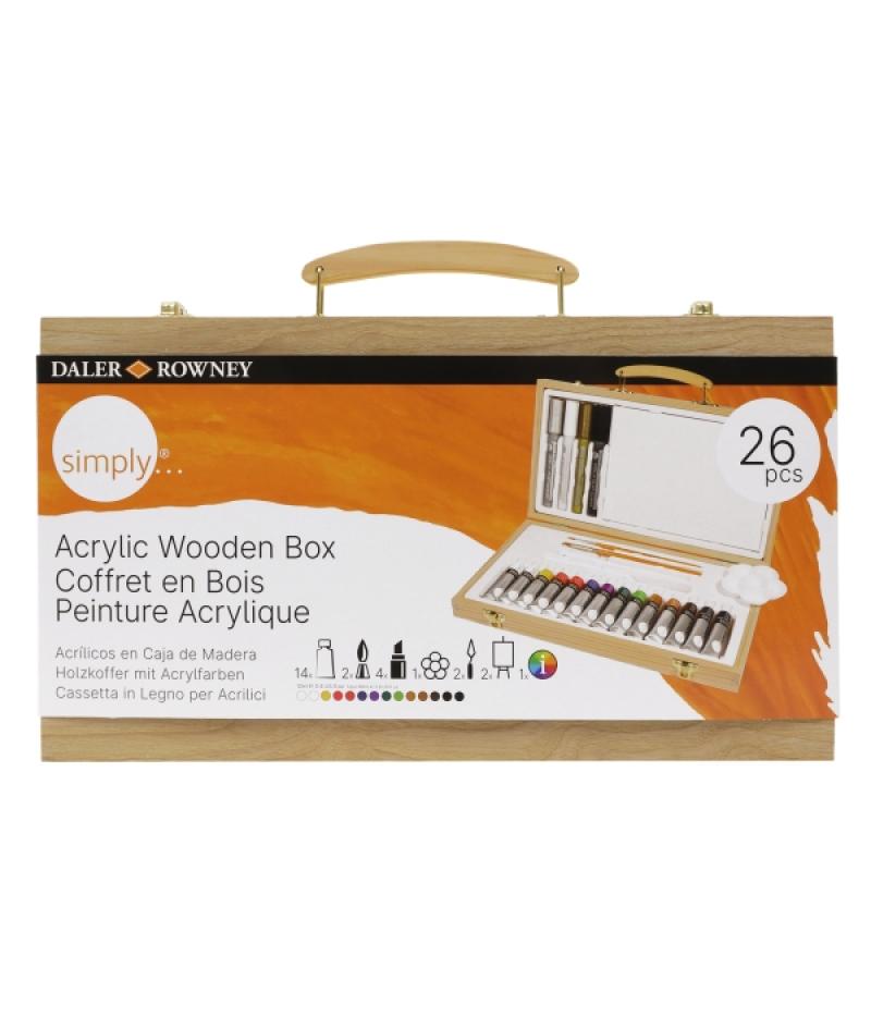 Daler Rowney Simply Pack de 26 Piezas - Pintura Acrilica - Caja de Madera - Colores Surtidos