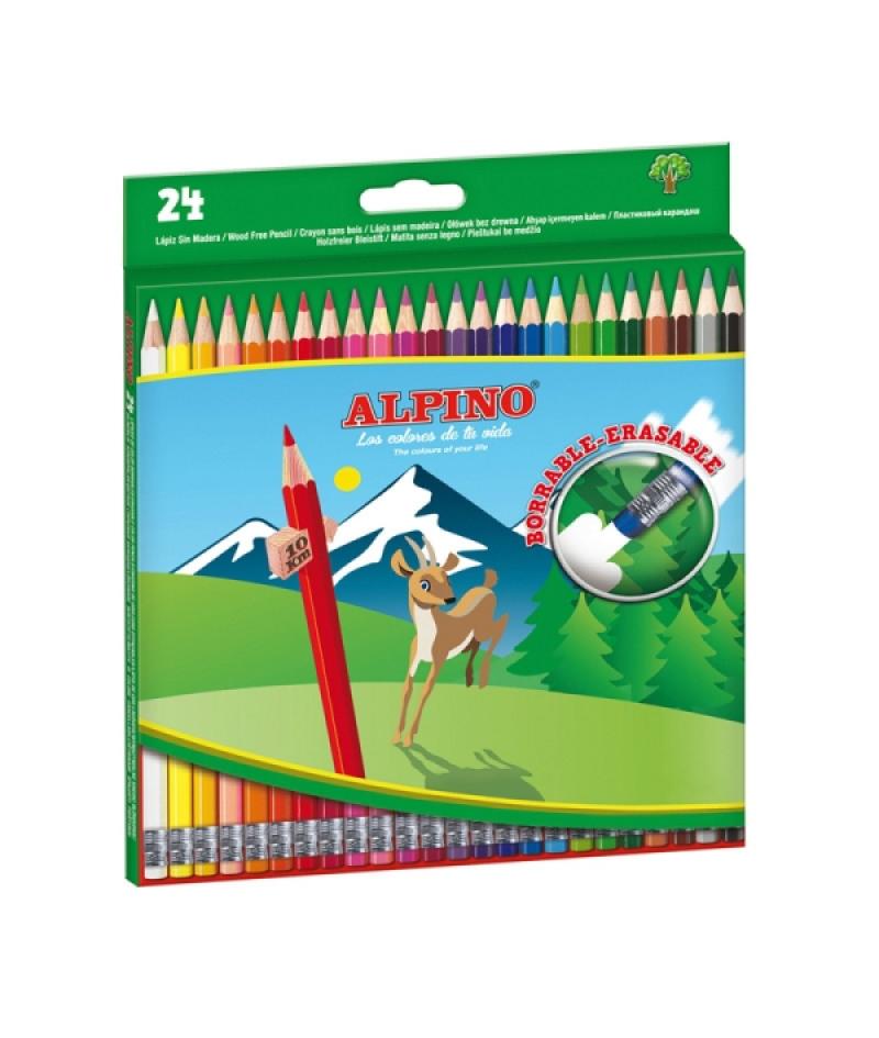 Alpino Pack con 24 Lapices de Colores Hexagonales Borrables - Mina de 3mm - Goma de Borrar del mismo Color - Resistente a la Rot