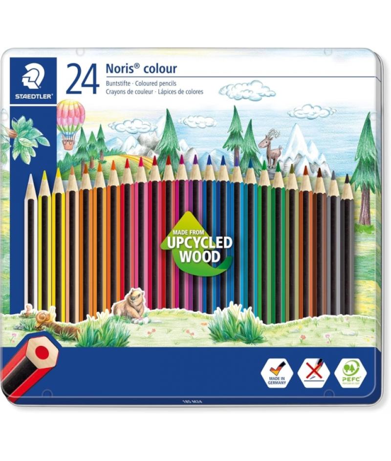 Papelería / Material de oficina - Dibujar, pintar y colorear - Lápices de colores 407258 - Staedtler Noris Colour 185 Caja Metalica con 24 Lapices Hexagonales de Colores - Fabricados en Wopex - Muy Resistentes - Madera de Fuentes Sostenibles - Colores SurtidosBeneficiario :