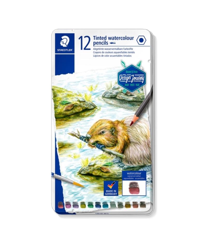 Staedtler 14610T Caja Metalica con 12 Lapices de Colores Tintados Acuarelables - Mina Suave - Colores Surtidos